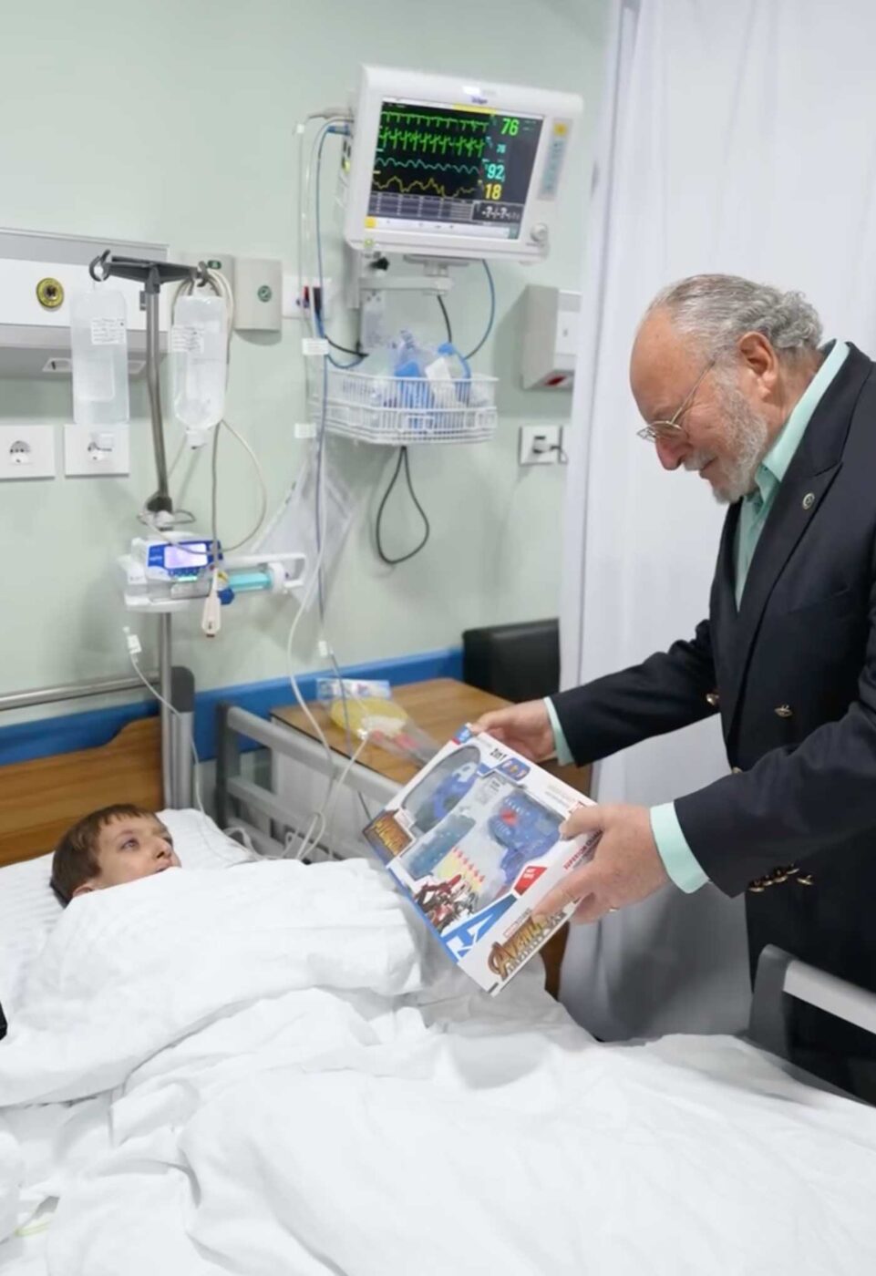 L’ancien roi d’Égypte et du Soudan offre un cadeau à un enfant hospitalisé (Photo : Al Nas Hospital)