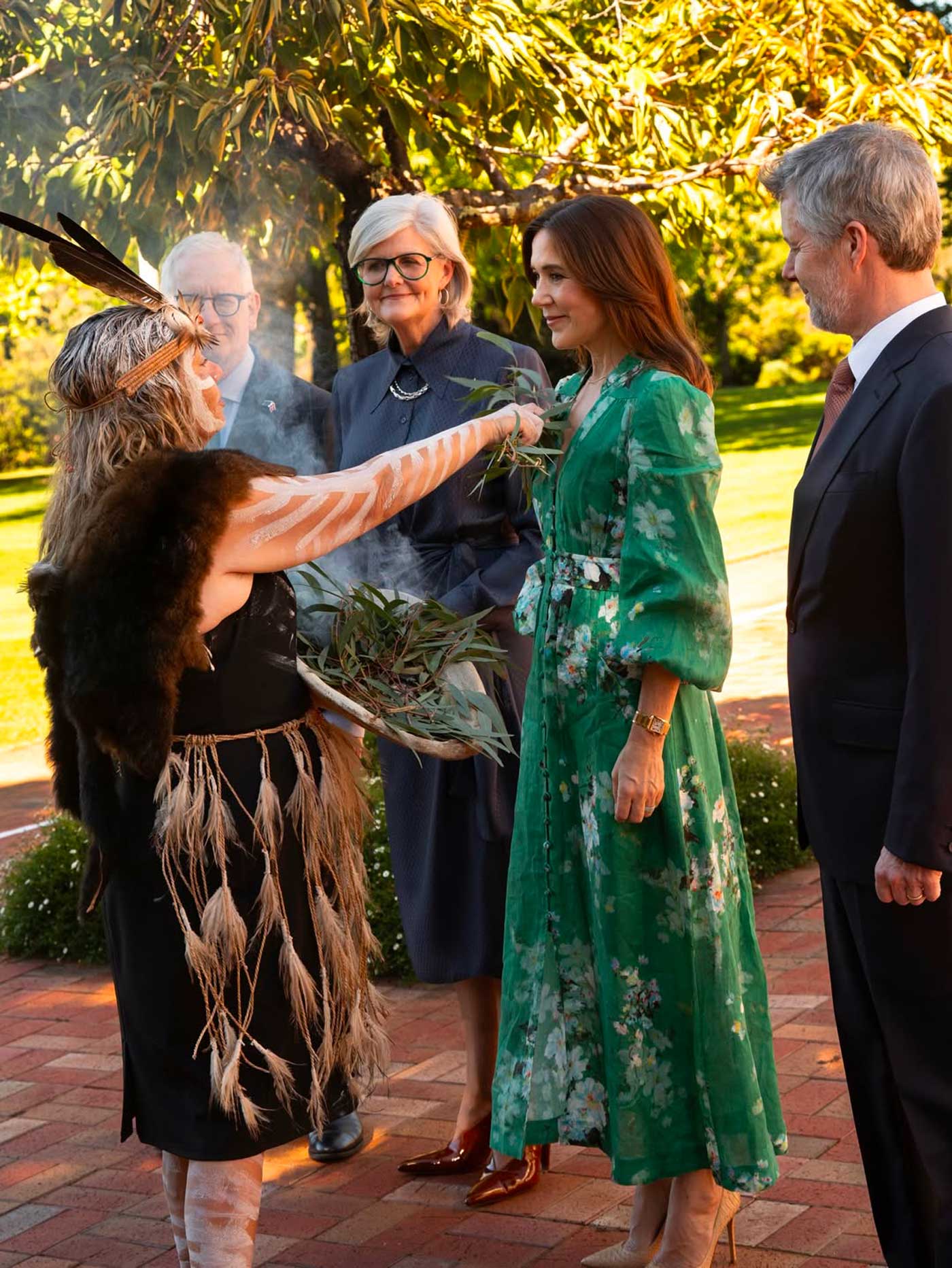 La gouverneure générale Sam Mostyn accueille le couple royal danois à la Government House de Canberra avec une cérémonie de fumigation