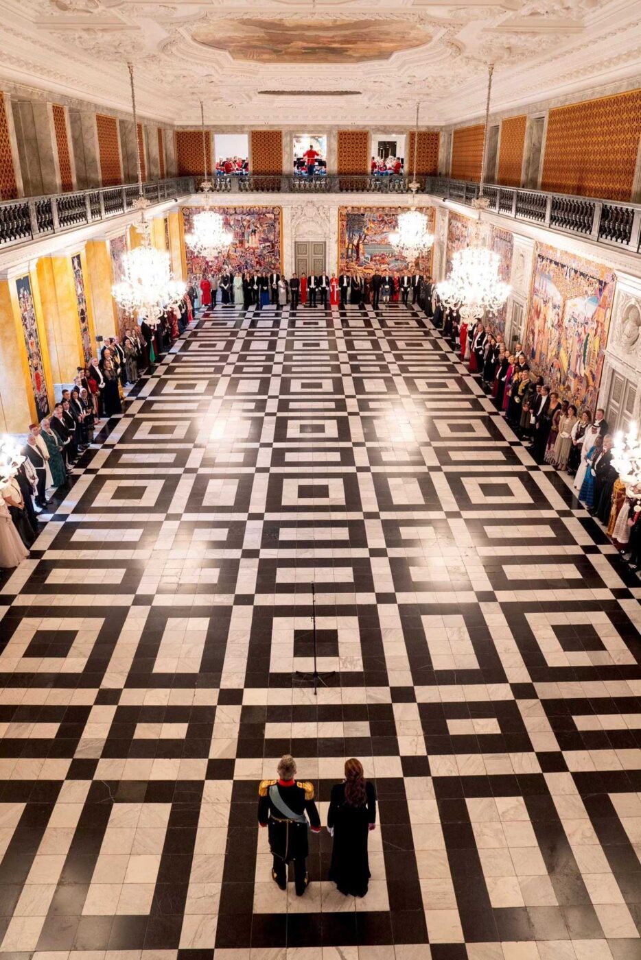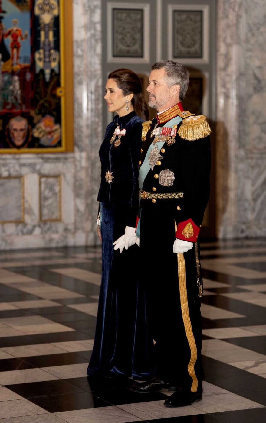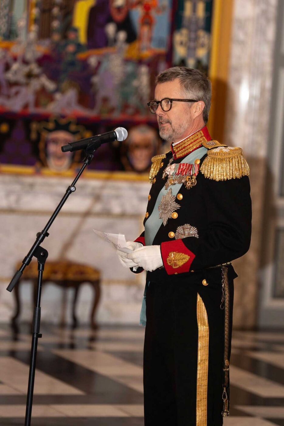 En matinée, les souverains danois ont salué les officiers du régiment des hussards de la Garde, les juges de la Cour suprême, lors de la première session, et les 98 maires du pays, lors de la deuxième session. La troisième réception avait lieu au château de Christiansborg, édifice qui sert aux cérémonies royales d’apparat, en particulier celles qui incluent des dignitaires étrangers. Lors des trois réceptions, la reine Mary portait sa tenue de cour en velours. Depuis le début du règne du roi Frederik, en 2024, les tenues de la Cour sont en velours bleu.
