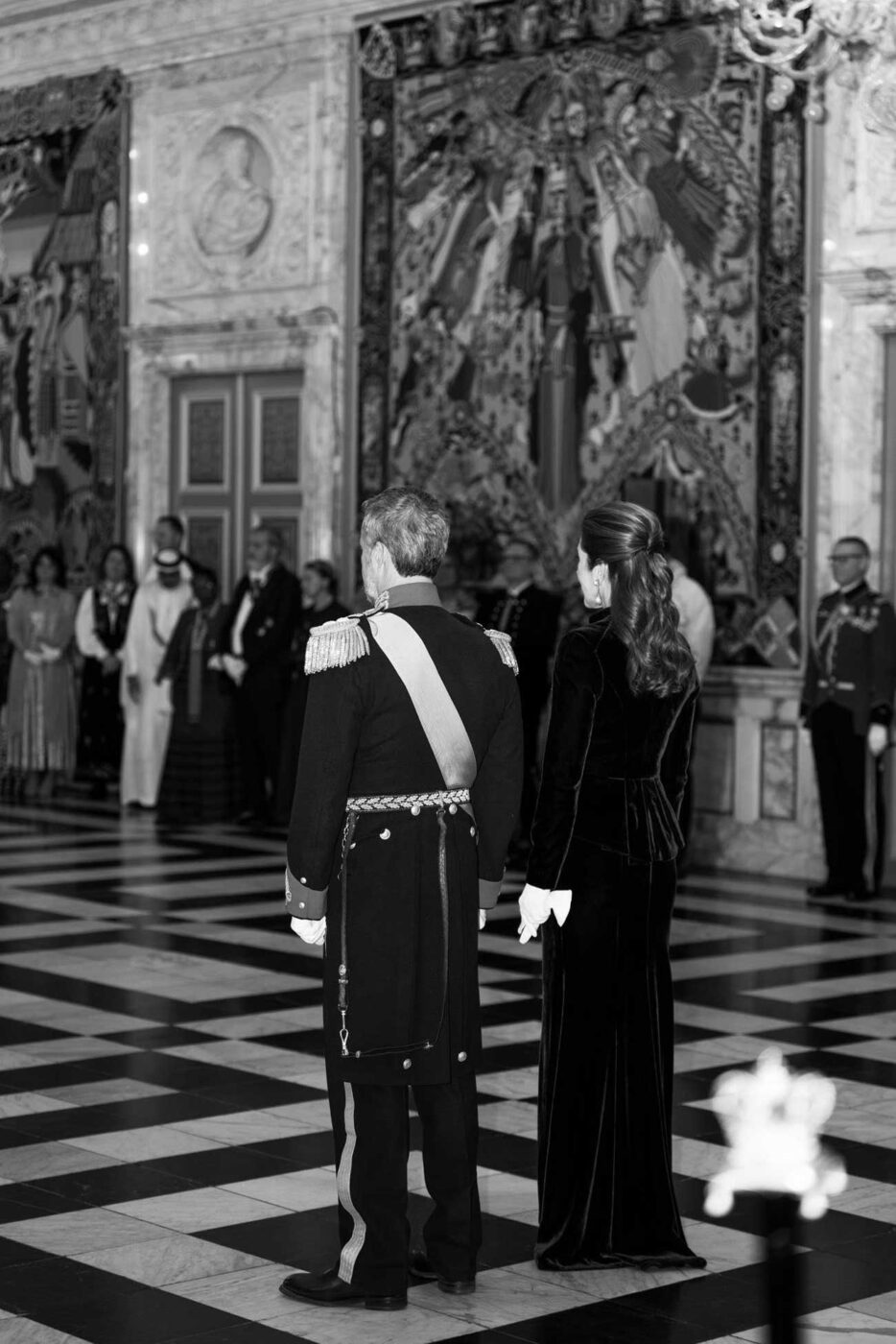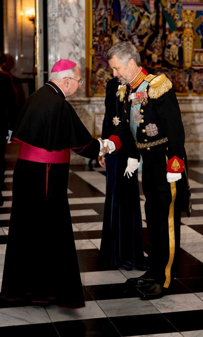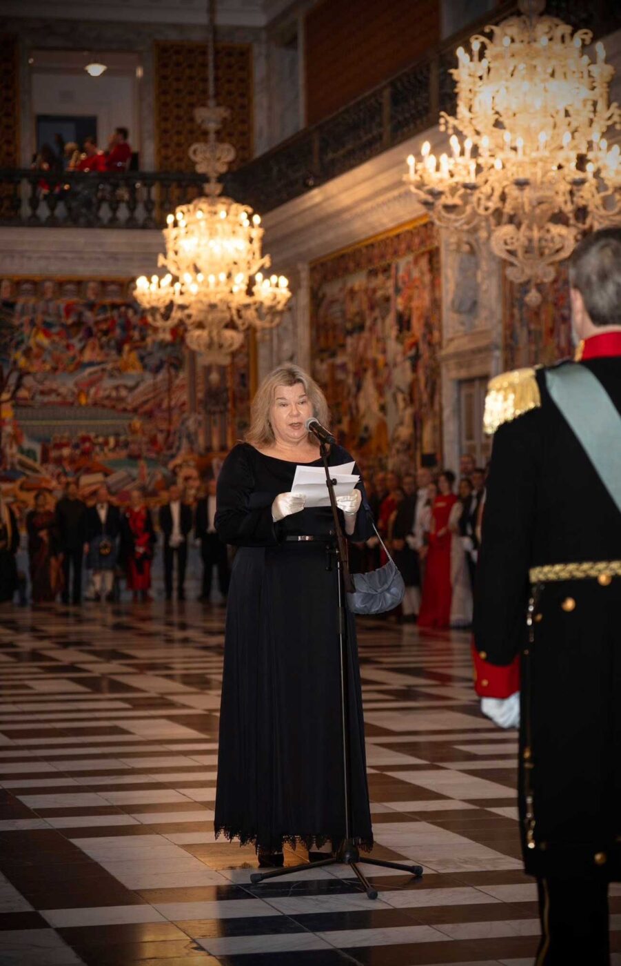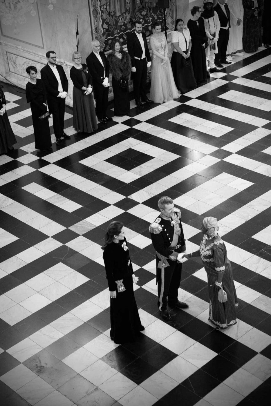 En matinée, les souverains danois ont salué les officiers du régiment des hussards de la Garde, les juges de la Cour suprême, lors de la première session, et les 98 maires du pays, lors de la deuxième session. La troisième réception avait lieu au château de Christiansborg, édifice qui sert aux cérémonies royales d’apparat, en particulier celles qui incluent des dignitaires étrangers. Lors des trois réceptions, la reine Mary portait sa tenue de cour en velours. Depuis le début du règne du roi Frederik, en 2024, les tenues de la Cour sont en velours bleu.