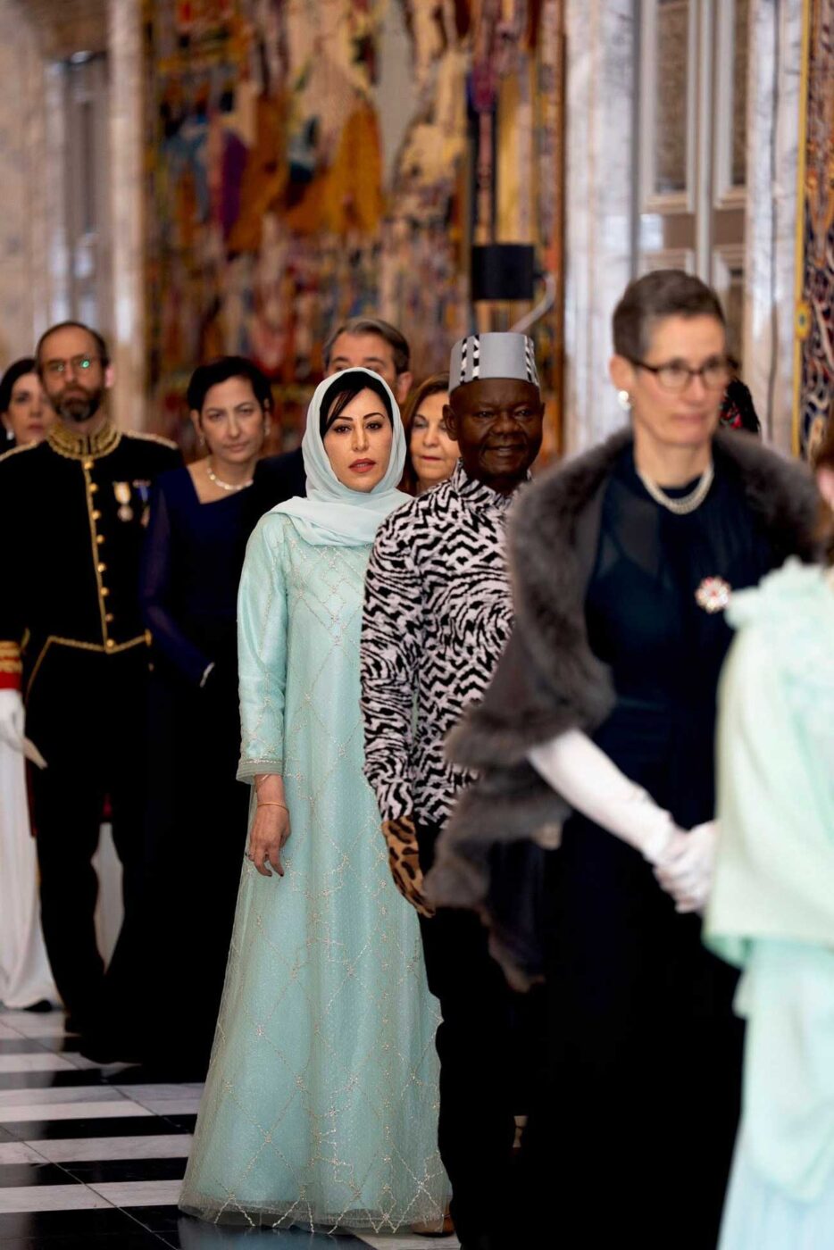 Le corps diplomatique en poste à Copenhague s’est réuni autour des souverains et un à un, chaque ambassadeur s’est incliné ou a fait une révérence devant le roi et la reine. Les ambassadeurs pouvaient, en plus, être accompagnés, ce qui multiplie par deux le nombre de mains serrées par les souverains au cours de cette cérémonie. Le doyen du corps diplomatique, soit l’ambassadeur ayant la plus longue carrière au Danemark, a prononcé un discours, auquel le roi Frederik a répondu.