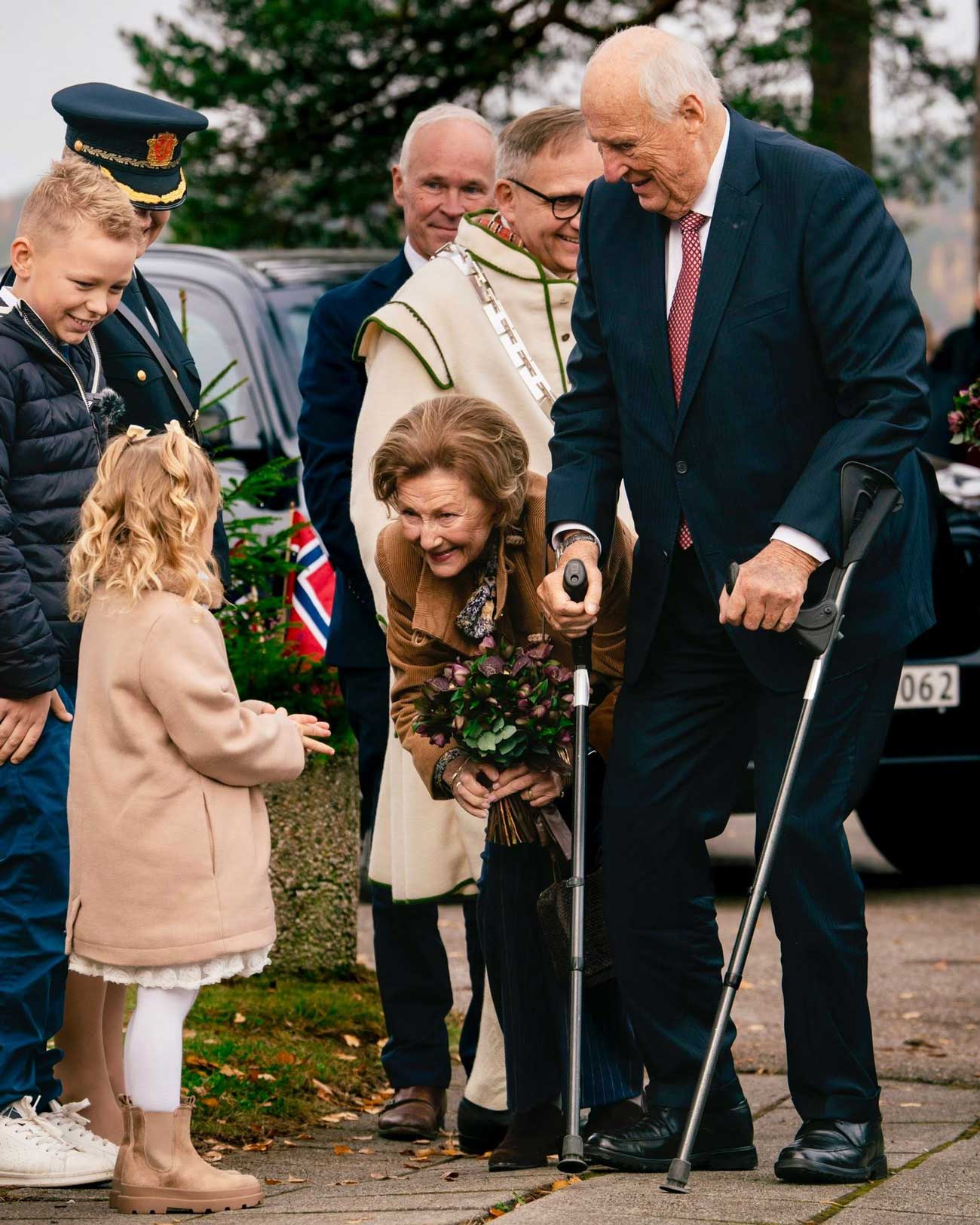 Le roi Harald V, 88 ans, et la reine Sonja, 88 ans, se sont rendus à Aremark ce 20 octobre 2025. Cette visite était très spéciale pour les souverains. Malgré son âge avancé et malgré près de 35 ans de règne, le chef d’État norvégien n’avait jamais visité cette localité de 1350 habitants. « La Reine et moi attendions avec impatience cette journée, à Aremark, que nous visitons pour la première fois. Nous pensons qu’il était temps ! », a déclaré le roi Harald lors de la cérémonie d’accueil à Aremark.