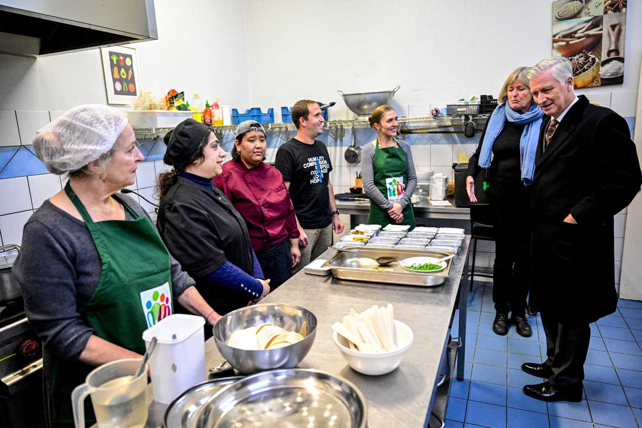 Après l’office chanté, le roi Philippe a également visité la cuisine communautaire de la pro-cathédrale. Le Comité central anglican soutient la dimension humaniste au cœur de la foi chrétienne. L’accent est mis sur l’éducation, la charité et il y a aussi un soutien d’aumôniers en prison. Chaque semaine, la paroisse anglicane distribue environ 5000 repas aux personnes dans le besoin à Bruxelles. Le roi Philippe a échangé avec les responsables, les collaborateurs et les bénévoles de la cuisine communautaire.