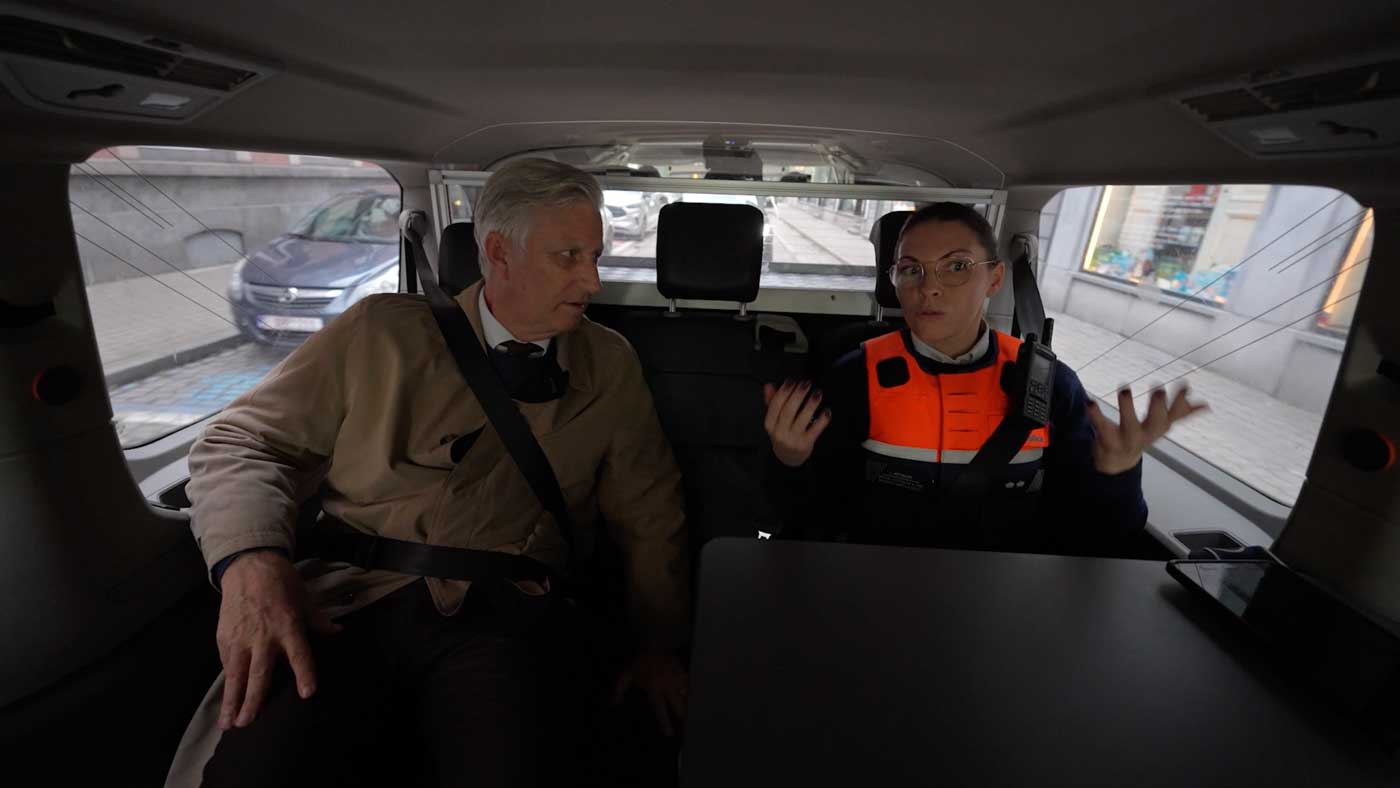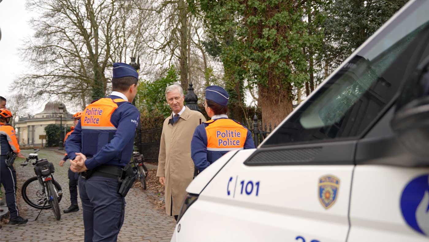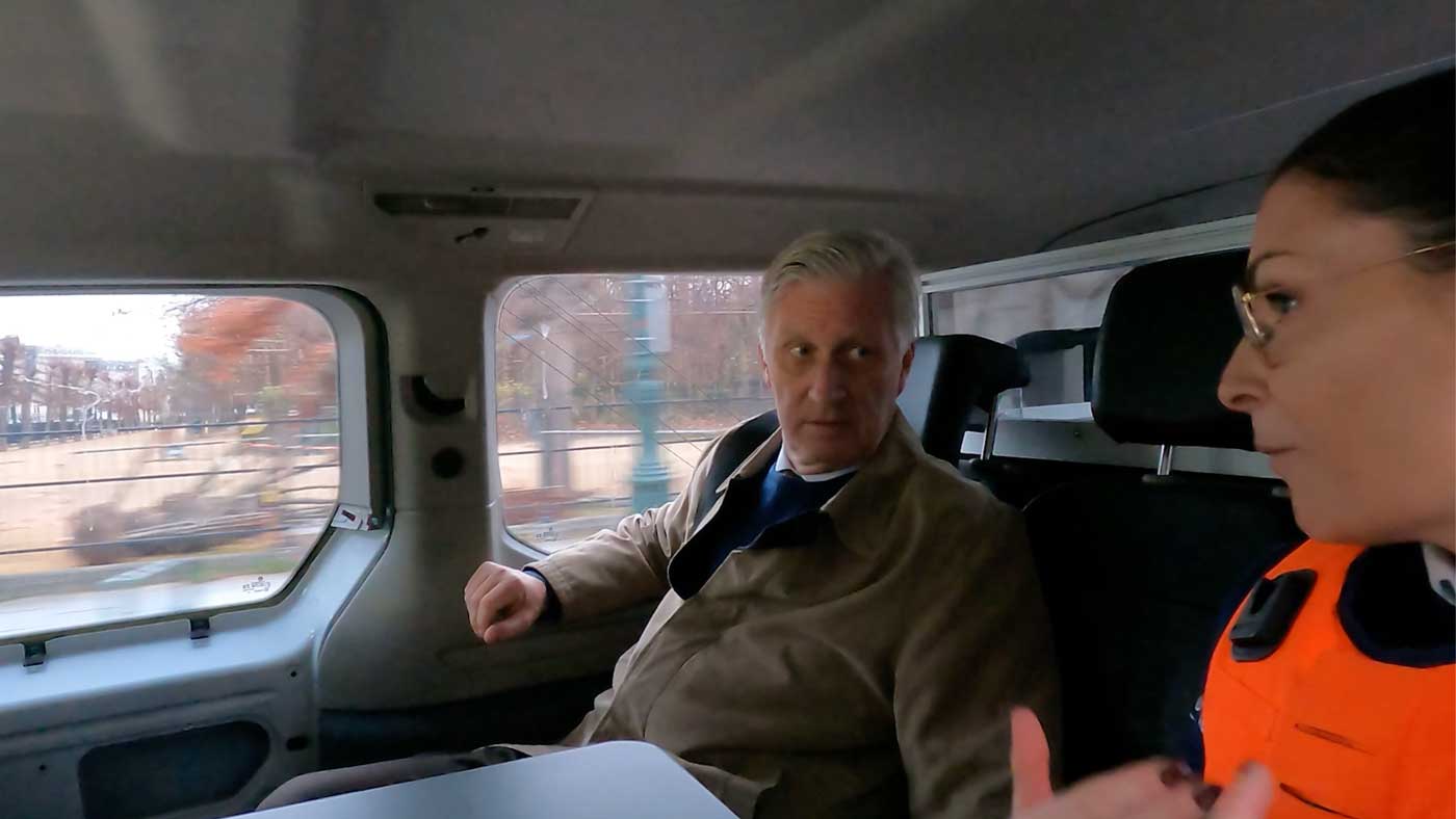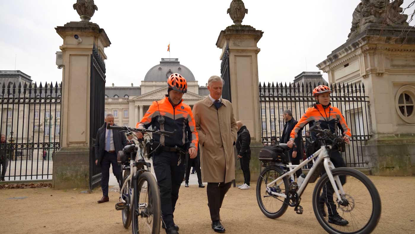 Dans une vidéo partagée par la police elle-même, en fin de journée, on découvre le parcours du roi Philippe, qui a commencé dès la sortie du palais royal de Bruxelles. Une patrouille à vélo est venue chercher le souverain sur son lieu de travail, puis ils ont traversé le parc royal, tout en échangeant à propos des missions qui sont effectuées à vélo. Les agents ont expliqué au Roi comment ils assuraient la sécurité du parc et ses alentours.