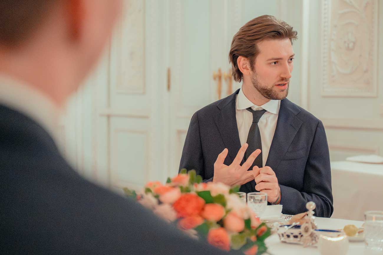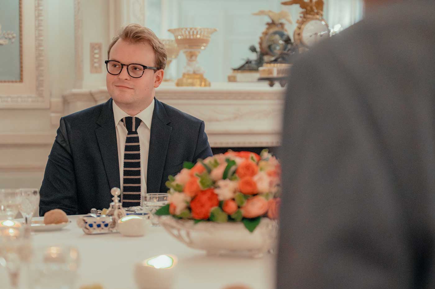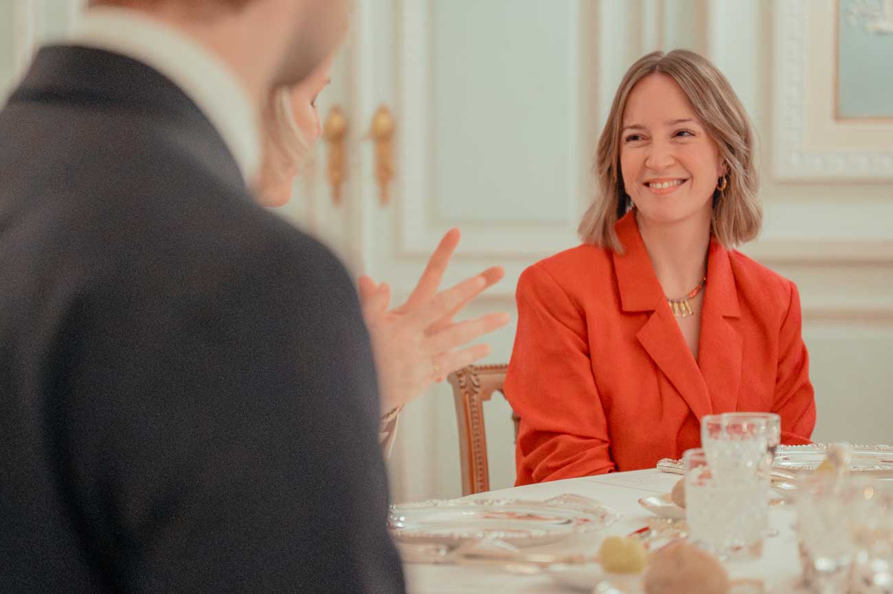 Après une réception avec le roi et la reine, les souverains ont ouvert les portes du grand salon pour dîner à table avec leurs invités. Le roi Philippe a prononcé un discours avant de rejoindre sa place à table. Les dîners en petit comité sont organisés par le Palais sans les annoncer au préalable à la presse, ce qui instaure un climat de confiance propice aux échanges sans formalité.
