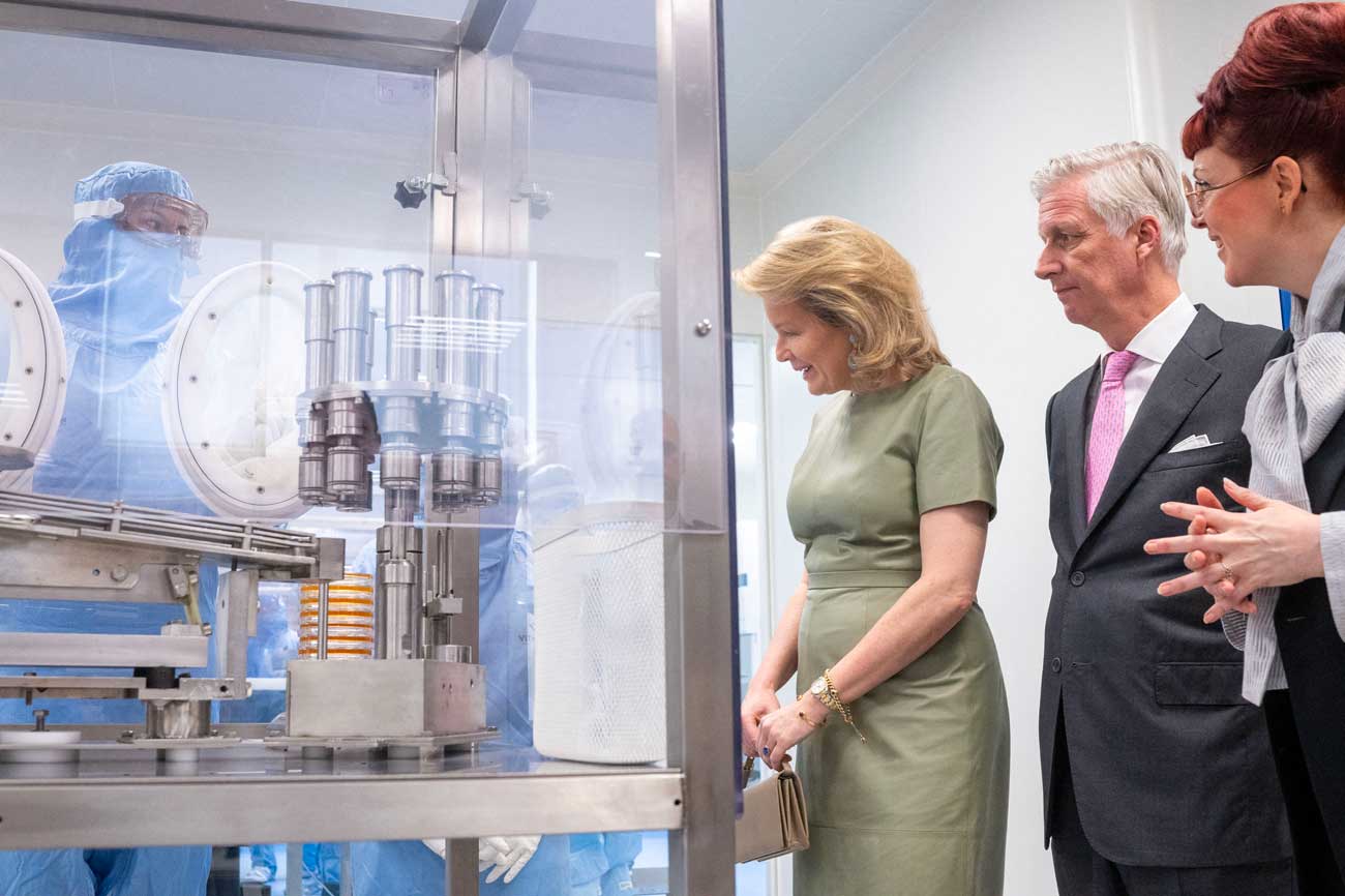 Le roi Philippe et la reine Mathilde ont visité le laboratoire pédagogique de ViTalent,qui est le tout premier centre de formation spécialisé dans les secteurs pharmaceutique et biotechnologique en Flandre, qui a ouvert en 2022. Il propose une large gamme de formations scientifiques. Enfin, le couple royal a visité Anicelles, un centre spécialisé dans la production de thérapies cellulaires destinées au traitement du cancer et d’autres maladies graves.