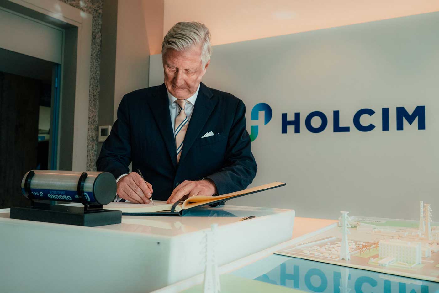 Le roi Philippe de Belgique a effectué une visite dans une cimenterie du groupe Holcim. Ce site de production est conscient de l’impact environnemental de l’industrie du bâtiment et tente de réduire les émissions de CO2 lors de la production de ciment, en construisant une nouvelle usine.