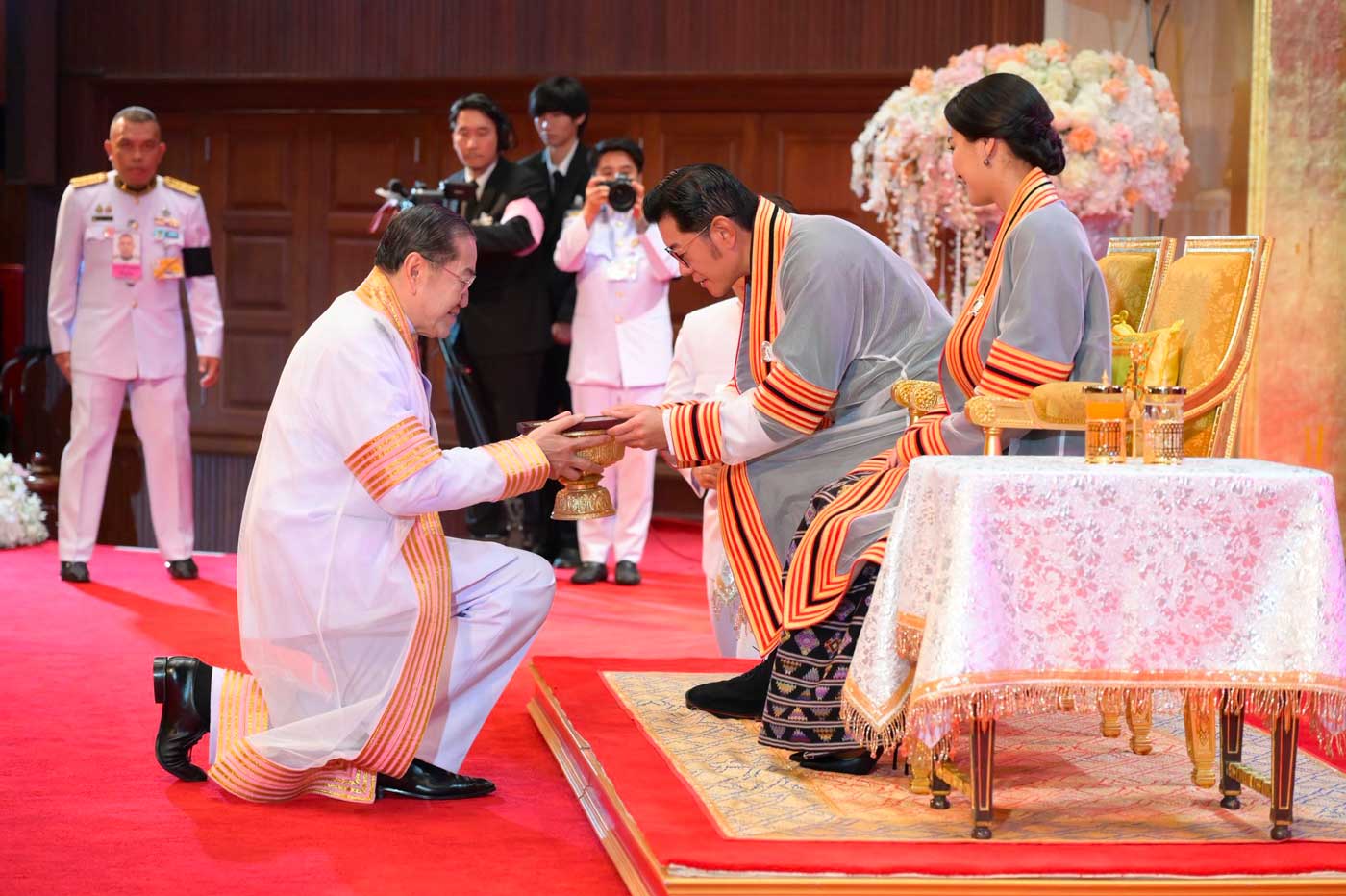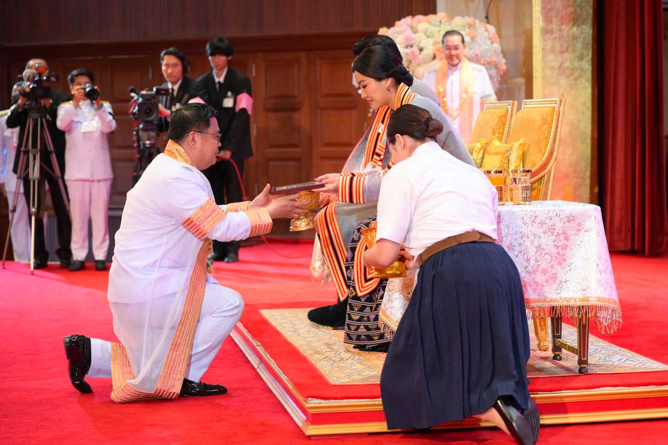 Les toges bleu pâle ont été remises au roi et à la reine, puis ils ont reçu les certificats de leurs nouveaux diplômes. Le roi Jigme Khesar Wangchuck a reçu le doctorat honoris causa en études du développement international « en reconnaissance de son leadership visionnaire en faveur de la paix, du développement inclusif, de la bonne gouvernance, de l’autonomisation des jeunes et des initiatives nationales novatrices, ainsi que pour sa contribution au renforcement de l’engagement international et des relations entre le Bhoutan et la Thaïlande », explique la Maison royale du Bhoutan.