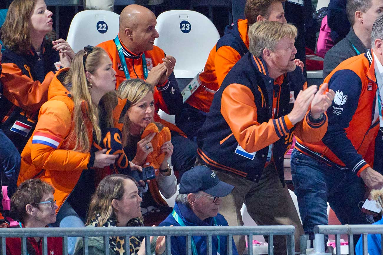 Le Roi, la Reine et la princesse d’Orange s’époumonent pour motiver les patineurs néerlandais aux Jeux olympiques