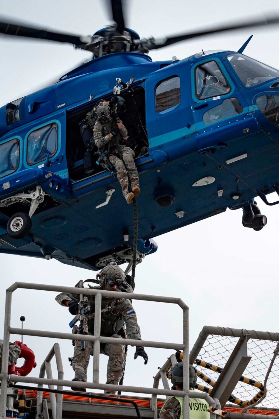 Lors de sa visite, le roi Willem-Alexander a assisté à une intervention impressionnante. Le chef de l’État néerlandais était présent à bord d’un navire plateforme lors d’un exercice simulant une prise d’otage de l’équipage. Après avoir assisté à l’exercice, le roi des Pays-Bas s’est entretenu avec l’équipe de formateurs et de superviseurs à propos de l’objectif de l’exercice, rapporte le Service d’information du gouvernement (RVD). Après l’exercice, le roi Willem-Alexander a aussi visité le Conseil de l’Amirauté, le plus haut organe consultatif de la Marine.