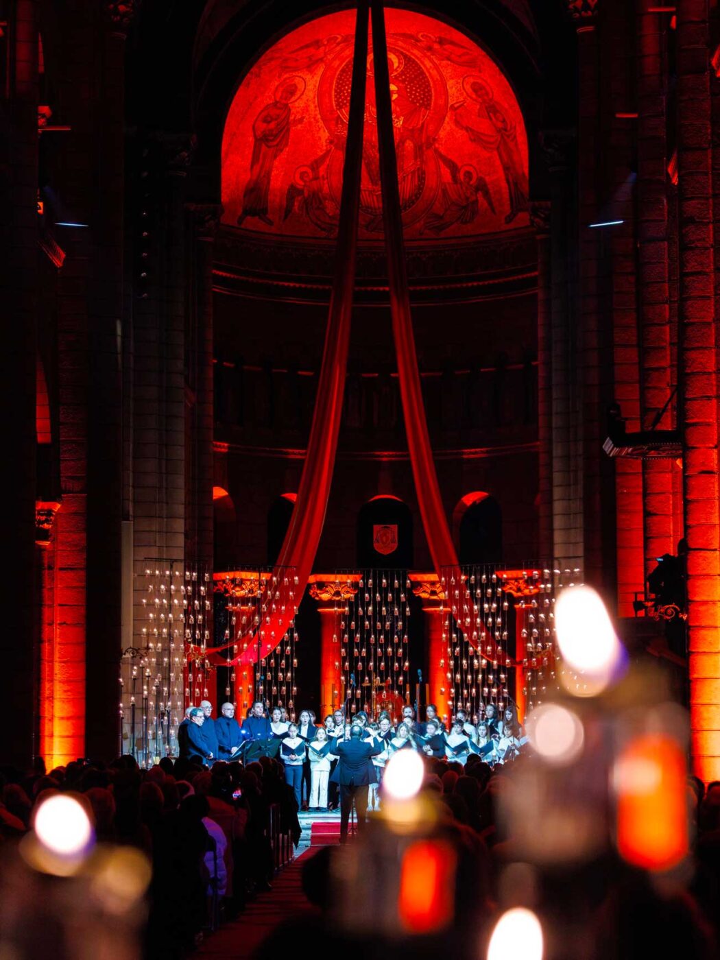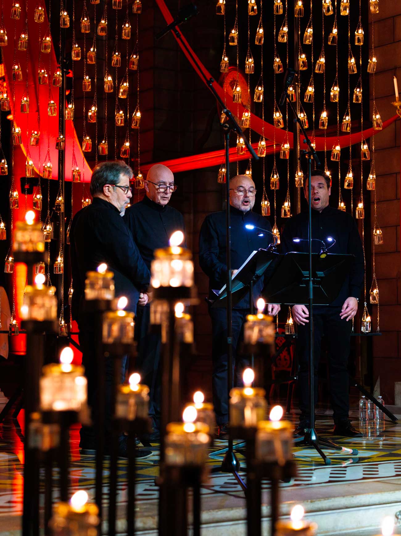 Un concert spirituel à la bougie était au programme. Le Chœur des hommes de Sartène était chargé de rendre ce moment propice au recueillement. Les chanteurs ont interprété des chants sacrés du répertoire polyphonique corse. L’ensemble corse était accompagné du Chœur de la Chapelle papale d’Assise et du Chœur d’enfants de l’Académie Rainier III. Le choix d’un groupe corse n’était pas un hasard. La sainte patronne de Monaco était d’origine corse et aurait fui son île au début du 4e siècle.