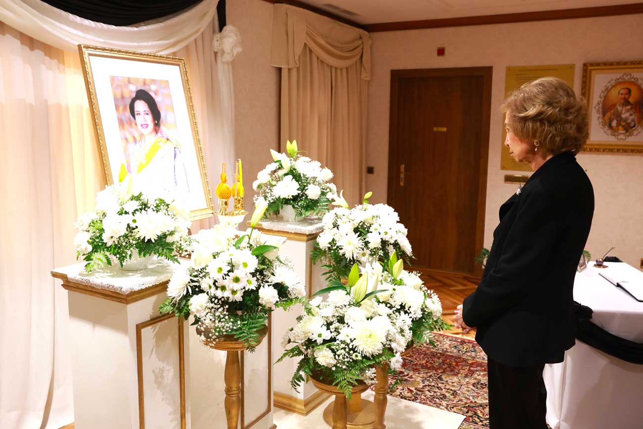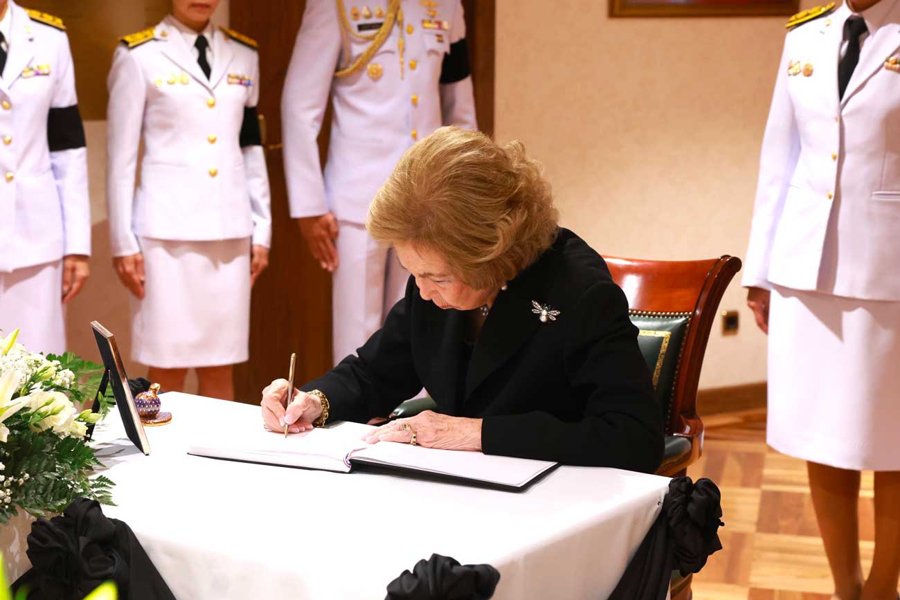 La reine Sofia signe le livre de condoléances à l’ambassade de Thaïlande à Madrid