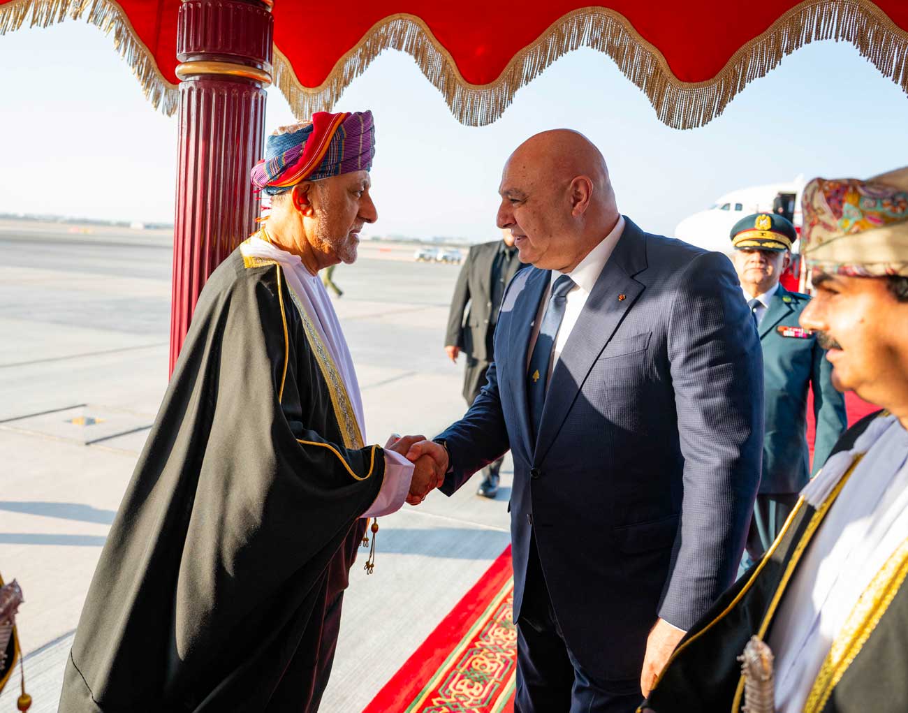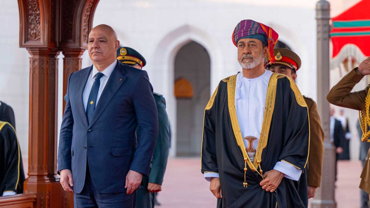 Ce mardi 9 décembre 2025, le président du Liban Joseph Aoun est arrivé à Oman, répondant à l’invitation du sultan Haitham ben Tarik. Dès sa sortie d’avion, le président libanais était accueilli par son hôte, qui avait fait le déplacement jusqu’à l’aéroport. Les deux chefs d’État ont ensuite pris la direction du palais Al Alam, où ils ont été accueillis par une salve de 21 coups de canon.