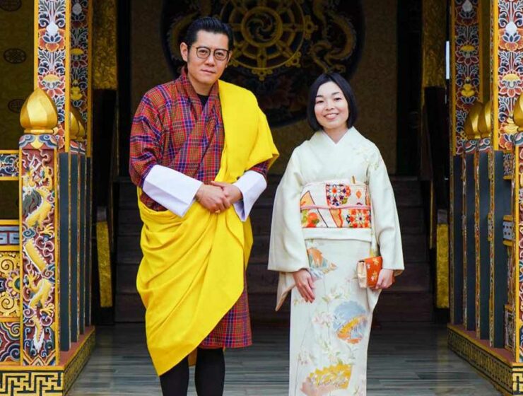 Le roi Jigme Khesar Wangchuck du Bhoutan a reçu au Tashichho dzong la princesse Akiko…