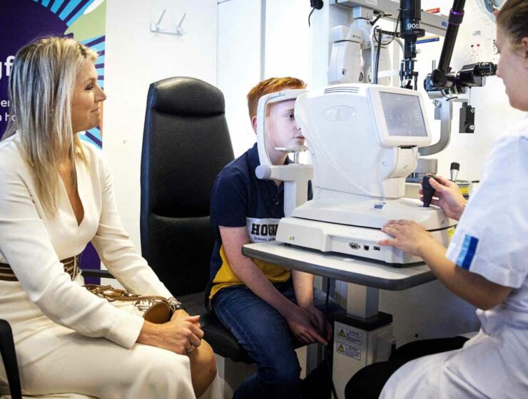 La reine Máxima des Pays-Bas a visité l’Oogfonds (Fondation oculaire) au Centre médical Érasme de…