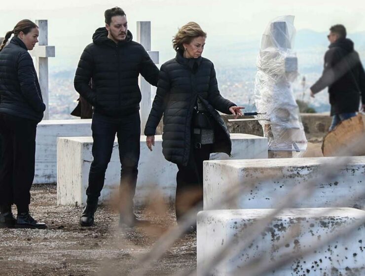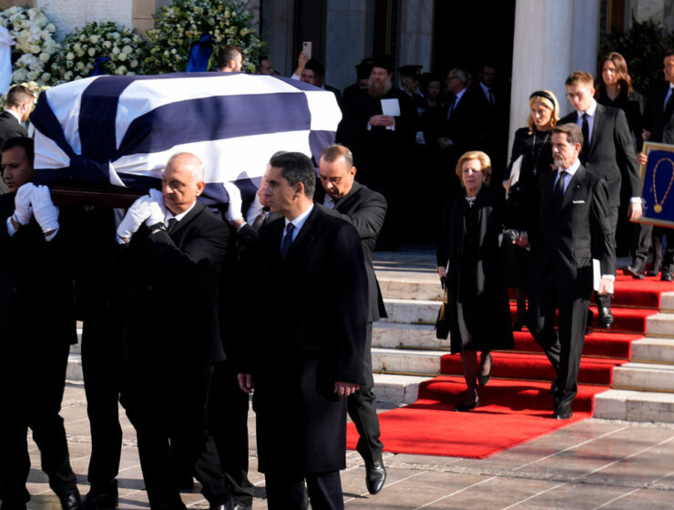 La descente du cercueil du roi Constantin II dans la terre aride de l’Attique est…