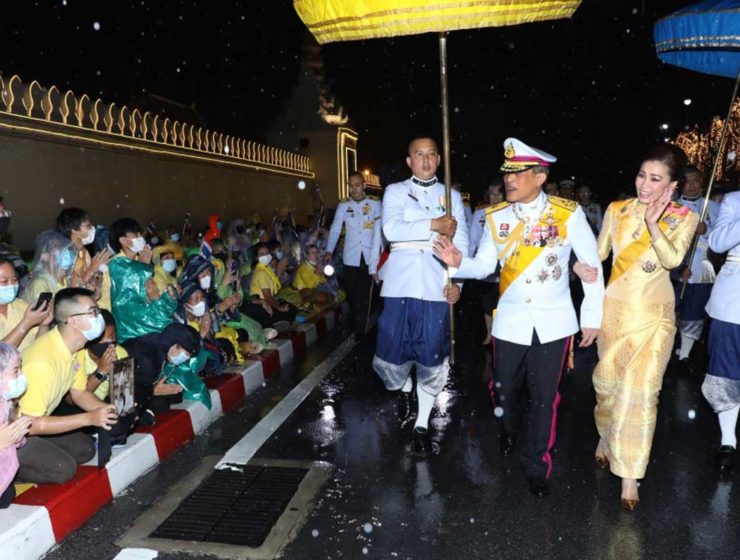 Le roi Maha Vajiralongkorn et son épouse, la reine Suthida, ont salué la foule, qui…