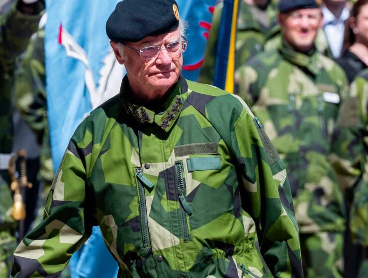 Dans la cour intérieure du palais royal de Stockholm, le roi Carl XVI Gustaf a…