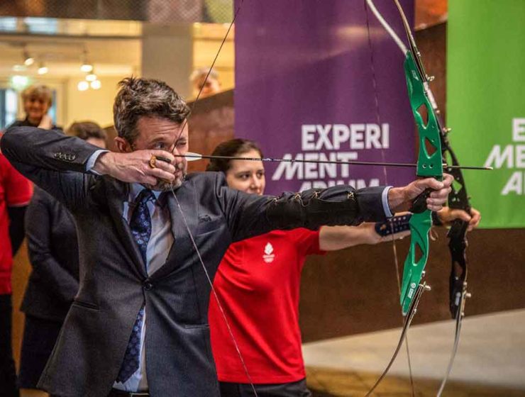 C’est avec un arc et une flèche que le prince héritier Frederik de Danemark a…