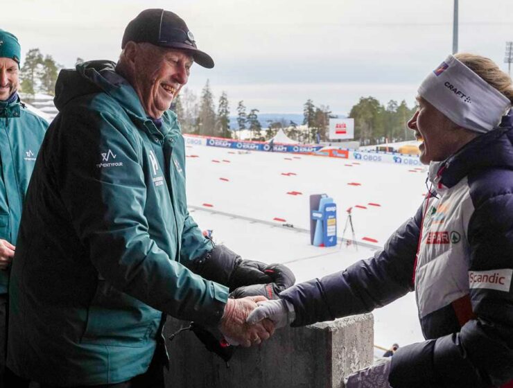 Le roi Harald, la princesse Astrid et le prince héritier fiers des skieurs norvégiens à Holmenkollen