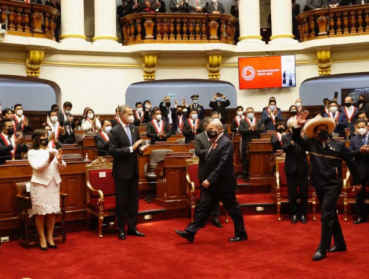 Comme le veut la tradition diplomatique, le roi d’Espagne assiste à l’investiture des nouveaux présidents…