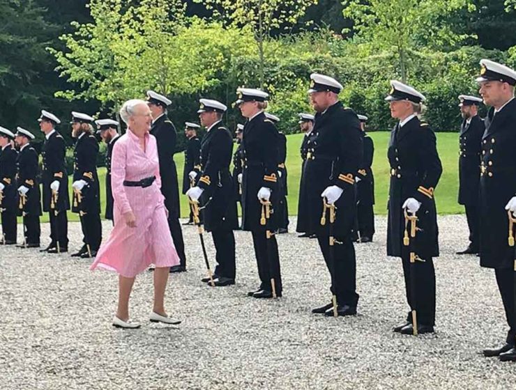À midi tapante, la reine Margrethe a passé en revue les nouveaux officiers de la…