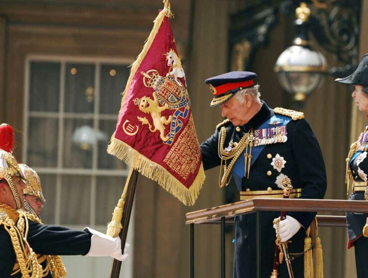 Le roi Charles III a remis le nouvel étendard du régiment des Blues and Royals,…