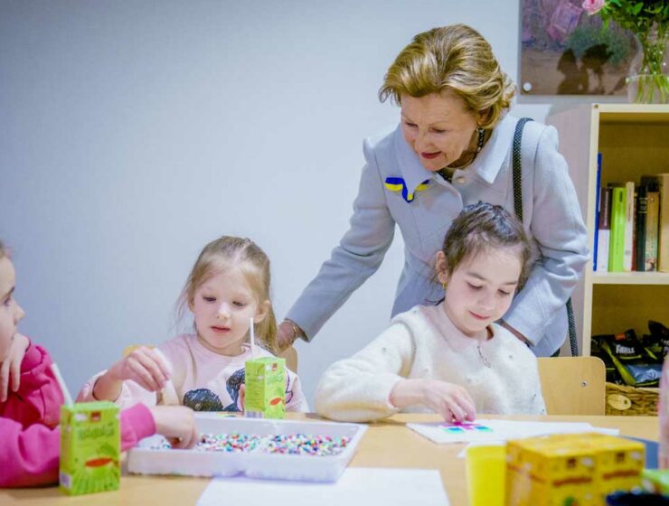 La reine Sonja de Norvège s’est déplacée dans un centre qui accueille des réfugiés ukrainiens.…