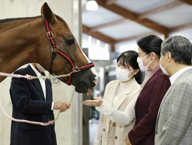 L’empereur Naruhito, l’impératrice Masako et la princesse Aiko ont visité ce jeudi les Écuries du…