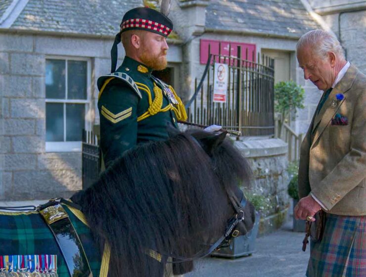 Le roi Charles III a été accueilli par la Compagnie de Balaklava et sa mascotte,…