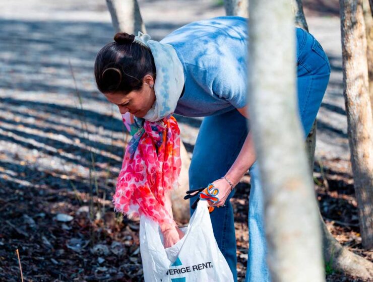 Équipée d’un sachet en plastique à la main et d’une paire de gants, la princesse…