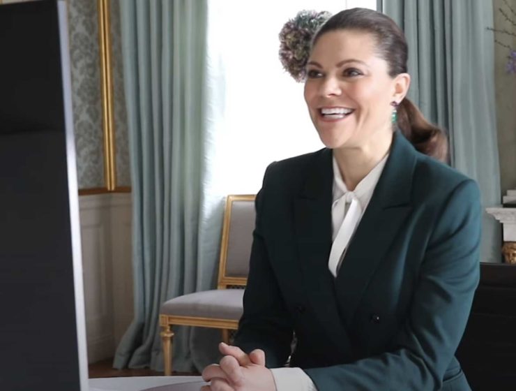 La princesse héritière Victoria de Suède a effectué une réunion virtuelle avec le personnel en…