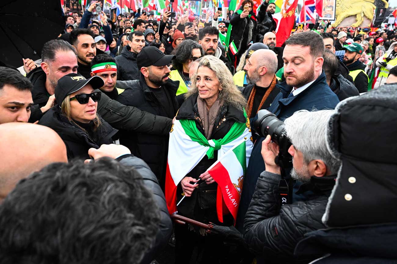 Les sympathisants du prince héritier Reza Pahlavi étaient plusieurs dizaines de milliers à répondre à son appel ce 14 février 2026 (Photo : Felix Hörhager/DPA/SIPA)