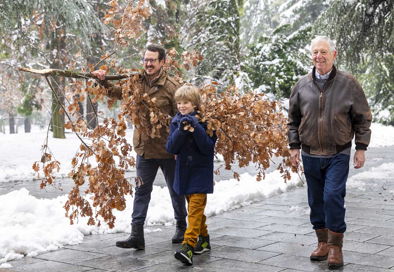 Le prince héritier Alexander, son fils le prince héréditaire Filip et son propre fils, le prince Stefan, ont coupé un arbre pour Noël. La veille de la célébration du Noël orthodoxe, les hommes de la famille royale serbe ont perpétué cette tradition séculaire en apportant cet arbre devant le palais royal de Belgrade.