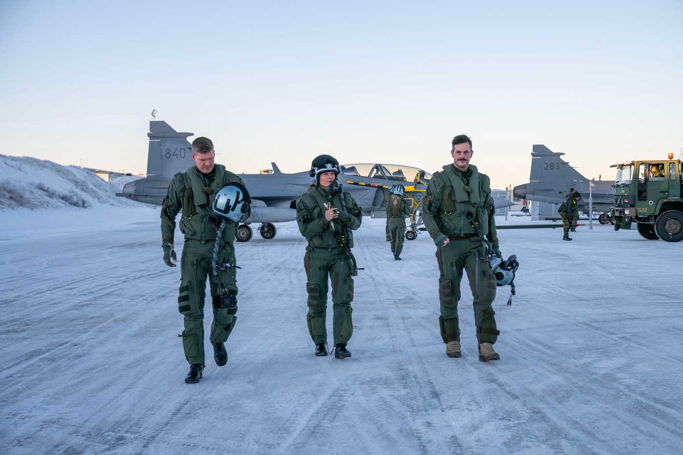 Pour mettre la théorie en pratique, Victoria a rendu une visite à la flottille aérienne de Norrbotten à Luleå. Après une formation sur la manière dont l’armée de l’air dirige, planifie et exécute ses opérations aériennes, la princesse héritière a rencontré la division d’avions de chasse et a participé à un vol lors d’une mission d’entraînement. Lors de cet exercice, un groupe de quatre pilotes a mené un combat aérien et défendu des ponts suédois contre deux avions ennemis qui tentaient de les attaquer. La princesse héritière Victoria était à bord de l’un des quatre avions de chasse. « La princesse héritière était très concentrée et impressionnée par les tactiques, la coopération et les capacités de l’avion de chasse », a déclaré l’administrateur de l’École de combat aérien Johan Lörelius.