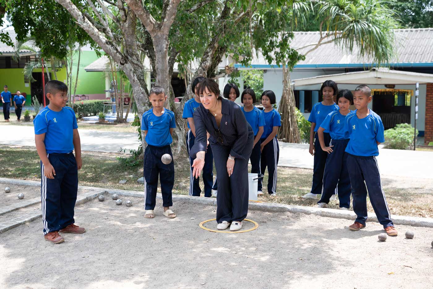 La princesse Yasmine a visité les salles de classe et a passé du temps avec les enfants. Elle a également déjeuné à la cantine, entourée d’enfants intrigués par sa présence. Quelques coutumes françaises ont aussi été adoptées par l’école, qui dispose notamment d’un boulodrome pour se détendre autour d’une partie de pétanque. La princesse Yasmine a aussi eu droit à un moment musical et une présentation de danse traditionnelle.